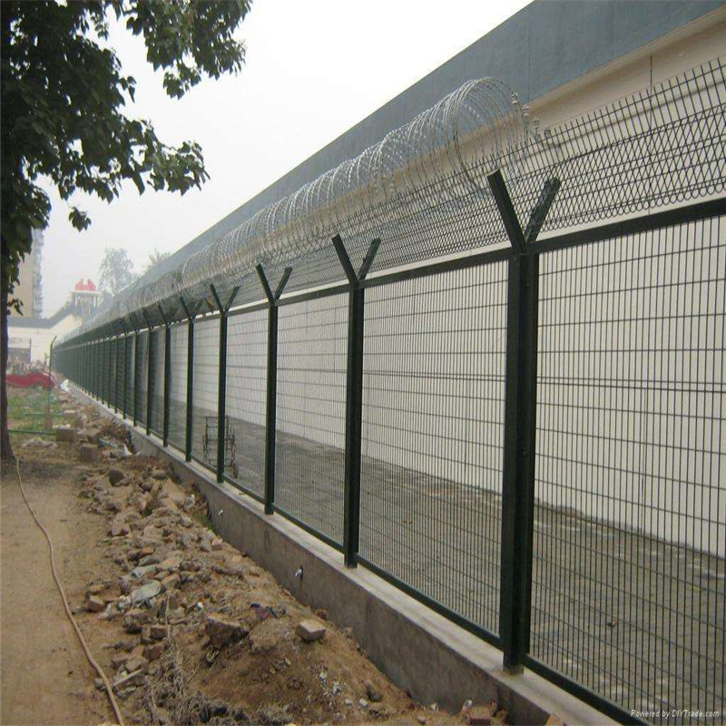 監(jiān)獄監(jiān)舍隔離網(wǎng)也叫監(jiān)獄圍墻網(wǎng)、監(jiān)獄圍欄、監(jiān)獄鋼網(wǎng)墻等,是重要的監(jiān)獄安全防護(hù)設(shè)施,由焊接鋼網(wǎng)加蛇腹形刀片刺繩網(wǎng)組合而成。監(jiān)