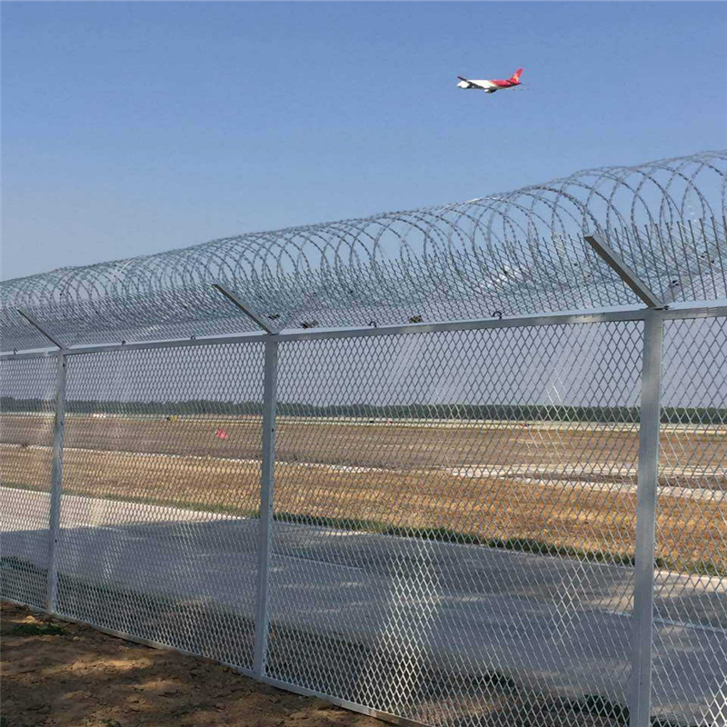 近年來,被廣泛應用在機場,軍事基地等高安全場所。注:如果在機場隔離柵頂部加裝刀片刺絲、刀片刺繩后又很好的增強了安全防護性能。