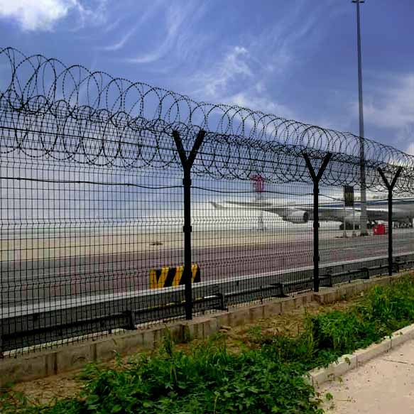 機場圍界網(wǎng)是安全防盜連接件和熱鍍鋅刀片刺籠組成是強度和安全防御性級別很高的隔離柵產(chǎn)品。近年來,機場圍欄網(wǎng)被廣泛應用在機