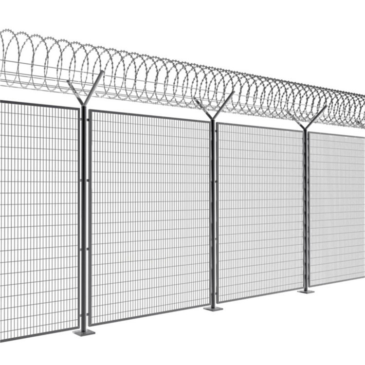 核電站圍欄網(wǎng)的-電廠防護網(wǎng)廠家是一款用于電廠的護欄網(wǎng)產(chǎn)品,其安全防護級別很高,也經(jīng)常用于監(jiān)獄,機場等等高安全防護場所。是由V型支架立柱,型焊接片網(wǎng),安全防盜連接件和熱鍍鋅蛇腹型刀刺網(wǎng)組成。具有安全性高、防攀爬能力好,網(wǎng)片連接方式采用特制SBS緊扣件,有效防止人為的破壞性拆卸,