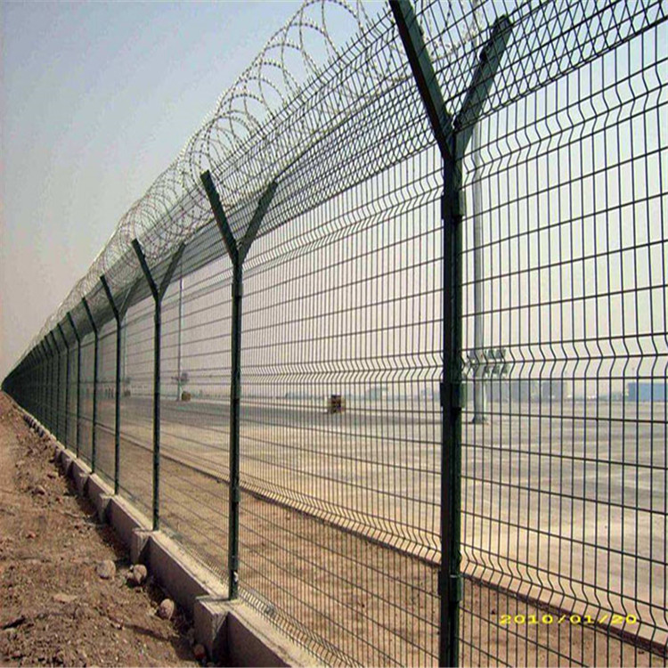 機(jī)場(chǎng)護(hù)欄網(wǎng)因?yàn)榫哂忻烙^、實(shí)用、方便運(yùn)輸和安裝等特點(diǎn),目前被社會(huì)普遍應(yīng)用。而且如果能在機(jī)場(chǎng)護(hù)欄網(wǎng)頂部加上刀片刺絲或者刀片刺繩后又進(jìn)一步的增強(qiáng)了安全防護(hù)性能。普通的機(jī)場(chǎng)護(hù)欄網(wǎng)大多都是采用電鍍、熱鍍、噴塑、浸塑等防腐形式,此方法具有很好的防老化、防曬等特點(diǎn)。