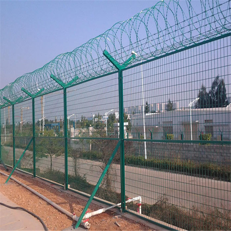 每次送別的時候雖然只是隔著一層護欄網(wǎng),但是看著飛機離去總是有種遙不可及的距離感,機場護欄網(wǎng)主要還是起到了防護的作用,并且包含了美觀、實用、方便運輸和安裝的特點。一般的機場護欄網(wǎng)頂部都會加裝刀片刺絲、刀片刺繩后又很好的增強了安全防護性能。機場護欄網(wǎng)基本都會采用熱鍍、電鍍、噴塑、浸塑等方式進行防腐,具有很好的抗老化、抗曬、耐候等特點。