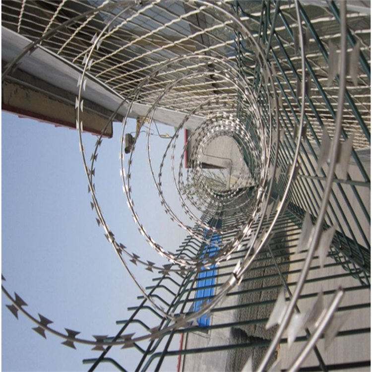 不銹鋼刀片刺網(wǎng)又稱為不銹鋼刀片剌絲、不銹鋼刀片刺繩,它是一種新型防護(hù)網(wǎng)。 不銹鋼刀片刺網(wǎng)具有美觀、經(jīng)濟(jì)實(shí)用、防阻效果好、施工便利等優(yōu)異特點(diǎn),目前,不銹鋼刀片刺網(wǎng)已被廣泛應(yīng)用于許多國(guó)家的工礦企業(yè),園林公寓,邊防哨所,軍事領(lǐng)域,監(jiān)獄,看守所,政府建筑物和其他國(guó)家的安全設(shè)施。