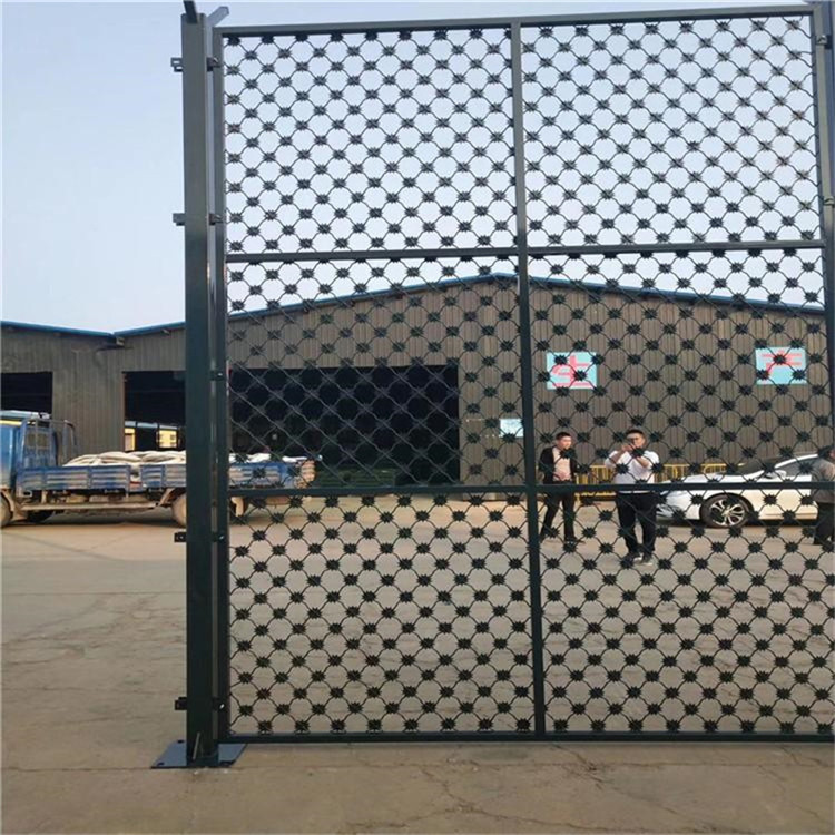 看守所加高圍墻網(wǎng) 又稱作“Y型安全防御護(hù)網(wǎng)”和機(jī)場(chǎng)護(hù)欄網(wǎng)通用,是由V型支架立柱,加強(qiáng)型焊接片網(wǎng),安全防盜連接件和熱鍍鋅刀片刺籠組成強(qiáng)度和安全防御性級(jí)別很高。近年來,被廣泛應(yīng)用在監(jiān)獄,軍事基地等高安全場(chǎng)所。注:如果在監(jiān)獄護(hù)欄網(wǎng)頂部加裝刀片刺絲、刀片刺繩后又很好的增強(qiáng)了安全防護(hù)性能。采用電鍍、熱鍍、噴塑、浸塑等防腐形式,具有很好的抗老化、抗曬、耐候等特點(diǎn)。其產(chǎn)品造型美觀、花色多樣,既起到圍欄作用,又起到美化作用。由于具有安全性高、防攀爬能力好,網(wǎng)片連接方式采用特制SBS緊扣件,有效防止人為的破壞性拆卸,橫向四道折彎加強(qiáng)筋,使網(wǎng)面強(qiáng)度顯著增加。