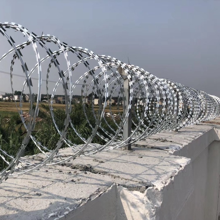 較后,刺絲滾籠的下緣距離鋼筋混凝土防護欄上緣的垂直距離應為5厘米。 刺絲滾籠不僅可以用在高鐵的防護上,對于倉庫、監(jiān)獄和軍事區(qū)等重要的封鎖場所也有重要的防護作用。對于社會的發(fā)展有著一定的重要性。