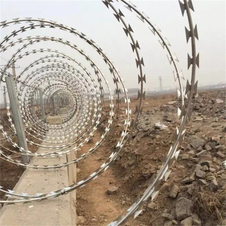 監(jiān)獄刀片刺繩BTO-22D的要求應(yīng)用領(lǐng)域:軍事重地、監(jiān)獄、政府機(jī)關(guān)、銀行;生活小區(qū)圍墻、私人住宅、別墅的圍墻、門窗、高速公路、鐵路護(hù)欄以及邊境線等防護(hù)安保。