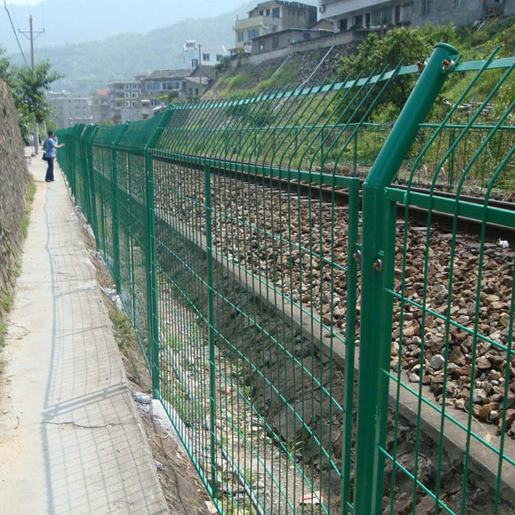 鐵路護(hù)欄網(wǎng)又叫鐵路隔離柵是重要的交通基礎(chǔ)設(shè)施,所以在安全性與實用性的要求上更加的嚴(yán)格。整個鐵路封閉網(wǎng)采用優(yōu)質(zhì)低碳鋼絲或不銹鋼絲編焊而成,其大致結(jié)構(gòu)可分為立柱+邊框,連接方式可以通過連接件連接,也可以用網(wǎng)片直接與立柱卡接、螺栓連接和連接件鉚接,角度可任意調(diào)整。