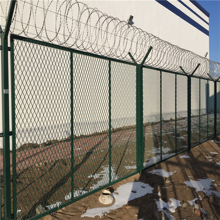 監(jiān)獄隔離網(wǎng)墻又稱監(jiān)獄隔離柵或監(jiān)獄防護(hù)網(wǎng),主要是采用高強(qiáng)度的刀片刺網(wǎng)與普通防護(hù)網(wǎng)的結(jié)合,由V型支架立拄,加強(qiáng)型焊接片網(wǎng),安全防盜連接件和刀片刺網(wǎng)組成.刀片刺網(wǎng)是一種新型防護(hù)網(wǎng),由銳利尖角鍍鋅鋼板或不銹鋼薄板做刀片,鋼絲做芯線組合而成的防護(hù)器材。