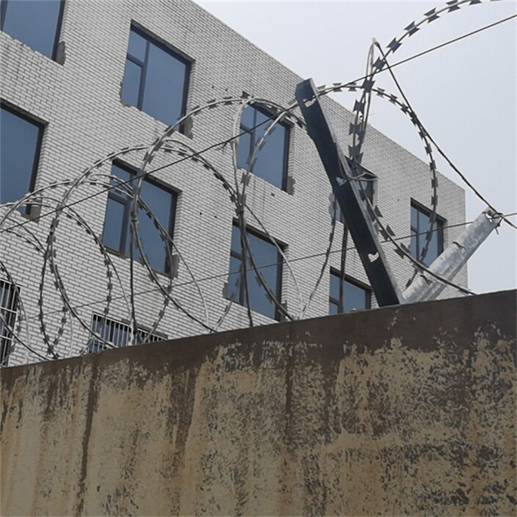 是一種近年發(fā)展起來的防護、隔離能力較強的新型防護網(wǎng)產(chǎn)品。它采用鋼板沖壓成型包附于鋼絲(筋絲)之上,由銳利尖角鍍鋅鋼板或不銹鋼薄板做刀片,高張力鋼絲做芯線組合而成的。鋒利的刀型刺由雙線扣裝后成蛇腹狀,既美觀又讓人不寒而粟。起到了很好的阻嚇作用。該產(chǎn)品具有美觀、防阻效果好、施工便利等優(yōu)點。