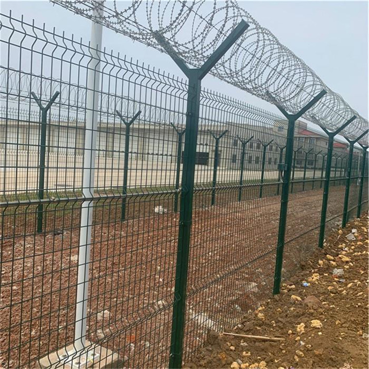 機場護欄網(wǎng)又稱作“Y型安全防御護網(wǎng)”,機場隔離柵、飛機場護欄網(wǎng)是由V型支架立柱,加強型焊接片網(wǎng),安全防盜連接件和熱鍍鋅刀片刺繩組成強度和安全防御性級別很高。近年來,被廣泛應(yīng)用在機場,軍事基地等高安全場所。注:如果在機場護欄網(wǎng)頂部加裝刀片刺絲、刀片刺繩后又很好的增強了安全防護性能。采用電鍍、熱鍍、噴塑、浸塑等防腐形式,具有很好的抗老化、抗曬、耐候等特點。其產(chǎn)品造型美觀、花色多樣,既起到圍欄作用,又起到美化作用。由于具有安全性高、防攀爬能力好,網(wǎng)片連接方式采用特制SBS緊扣件,有效防止人為的破壞性拆卸,橫向四道折彎加強筋,使網(wǎng)面強度顯著增加。