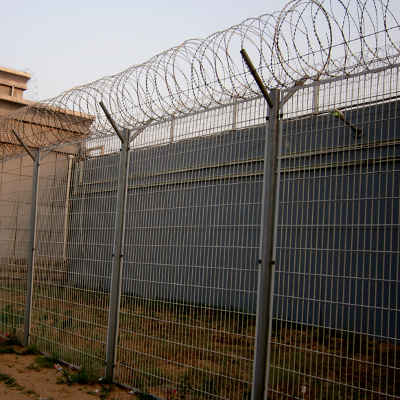 警戒金屬圍墻隔離網(wǎng)又稱作“Y型安全防御護(hù)網(wǎng)”,是由V型支架立柱,加強(qiáng)型焊接片網(wǎng),安全防盜連接件和熱鍍鋅刀片刺籠組成,在強(qiáng)度或安全防御性上的級別都很高。近年來,被廣泛應(yīng)用在監(jiān)獄,軍事基地等高安全場所。