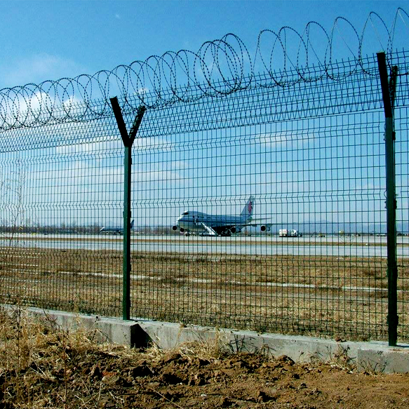 經(jīng)常坐飛機的朋友,應該會注意過在機場外圍一圈綠色金屬絲編織或焊接的圍網(wǎng),這就是我們經(jīng)常說的機場圍界網(wǎng),而我要給大家介紹的是一種我們公司近兩年研制的新型機場圍界產(chǎn)品 -- 鋁包鋼機場圍界