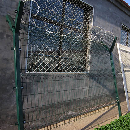 監(jiān)獄鋼網墻又稱為刀刺鋼網墻,常用在監(jiān)獄、看守所、邊防等軍事重地,屬于高安全場地用護欄網。除去本身規(guī)格質量求